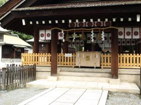 ![]() | ![]() | 拝殿のなかでおごそかに執り行われる神事の様子です。 この写真は拝殿の西側から撮影されています。 拝殿の東側にもテントが用意され、こちらにも多数の関係者が 参列していたことがわかりました。 |